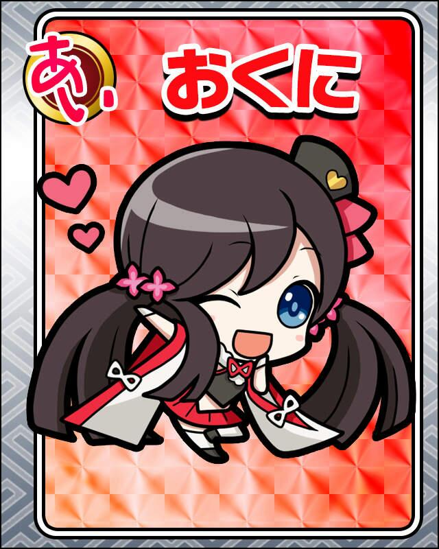 | 備考 | 入手:イベント『宇喜多の夏日記2』みにみに袋 愛SR [歌舞伎]出雲阿国 | |||