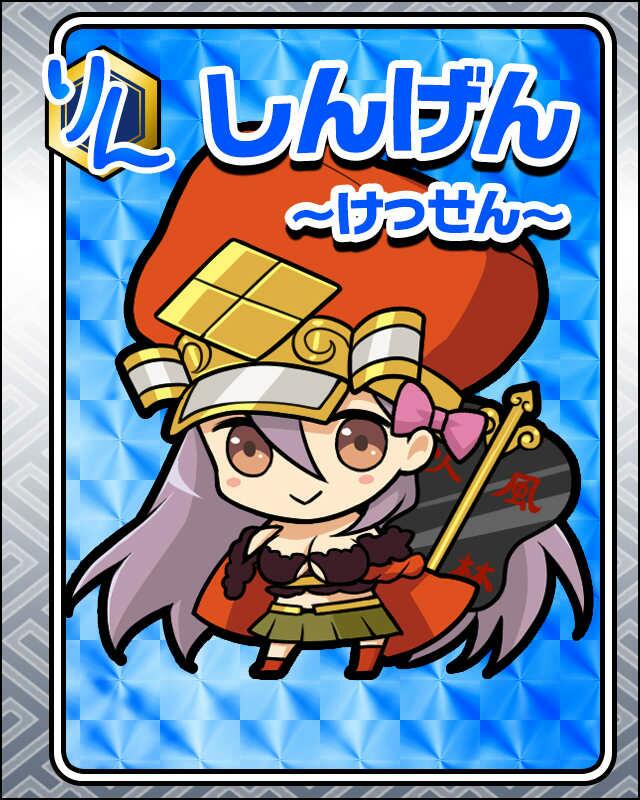 | 備考 | 入手:イベント『宇喜多の夏日記2』みにみに袋 凛SSR [風流紅粉]武田信玄-赫灼虎- | |||