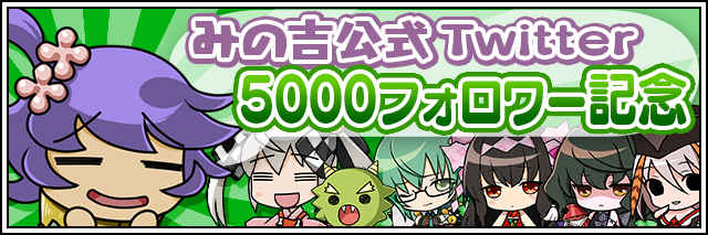 みの吉「姫さま!!ついったーのふぉろわーがついに5000人超えです!!お祝いですよ、これは!!」 咲姫「みの吉のついったーで合言葉を公開しておるぞ!!合言葉を入力して祝いの品を受け取るがよい!!」