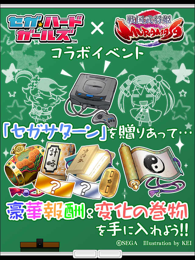 ・開催期間、内容は予告なく変更される場合があります。 ・ゲームにおけるバグやツールを利用し利益を得る行為はアカウント停止の対象となります。 ・同じ人に連続して贈り物は出来ません。 同じ人に贈る場合、成立してから4時間経過する必要があります。 ・1日に贈ることのできる回数は最大420回までです。 ・回数は朝4時にリセットされます。 ・日記が書けるのは1時間に1回のみです。 連続での投稿は出来ませんので、ご注意ください。 ※セガサターンを獲得するには、日記投稿後「戦国武将姫-MURAMASA-」のリンクより戻る必要があります。 ・セガサターンはイベント終了後に削除されますので、イベント期間中に使用してください。
