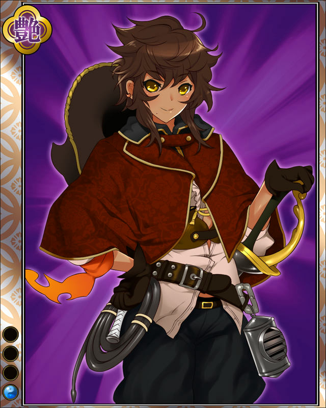 | コメント | 「測量、任せてオケって!!」 イスパニアの冒険者。 港を作るという名目で日本沿岸の測量を終え、家康に無断で 帰還しかけるも船が大破し頓挫、結果家康に見捨てられた。 |