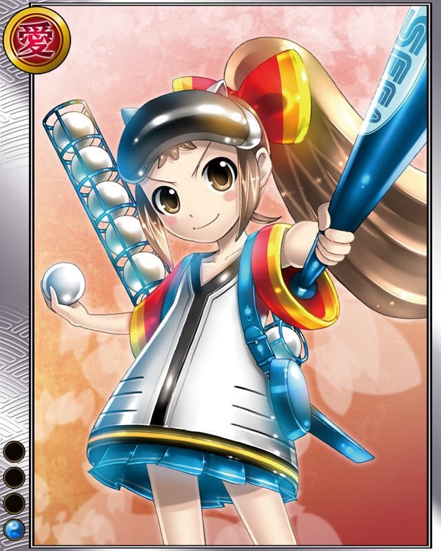 | コメント | 「いっくよ~!!」 とてもやんちゃな元気っ子。 子ども扱いが嫌いで、怒らせるとバットを振り回して追いかけてくるが、 背が小さいため、頭を押さえられるとバットが届かず空回りしてしまう。 |