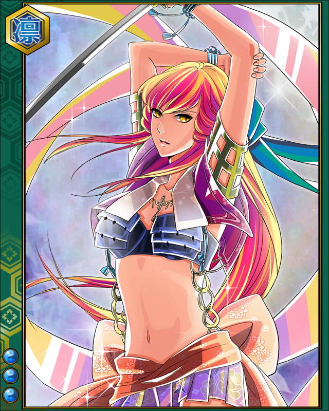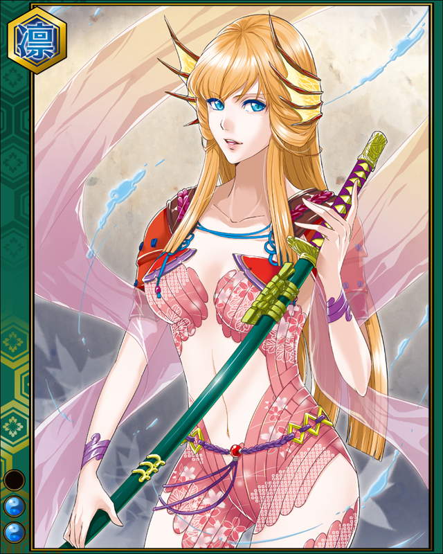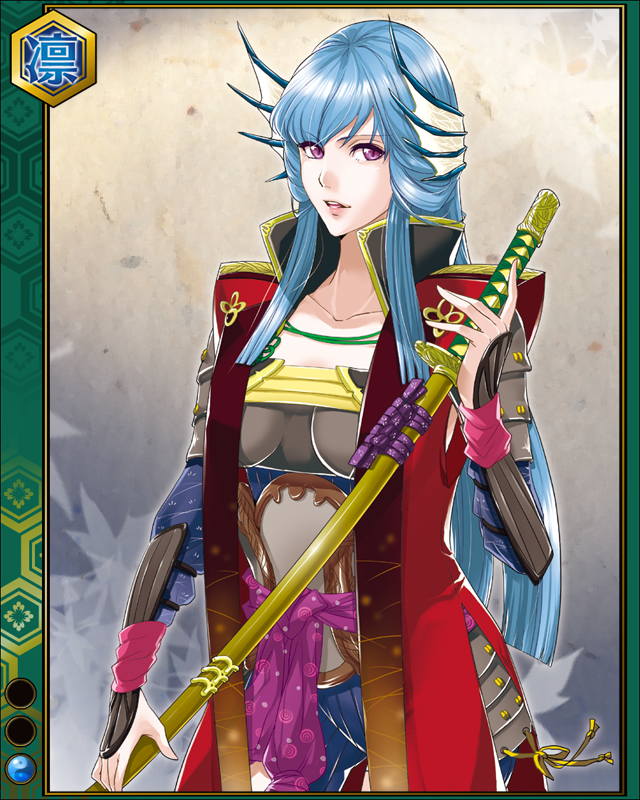 | コメント | 「手の内にある三日月を……姉さまに託します」 三好長慶の妹として姉の覇業を補佐する。 千利休ら茶人と交友を持ち、 武勇のみならず教養も持ち合わせた。 | |||