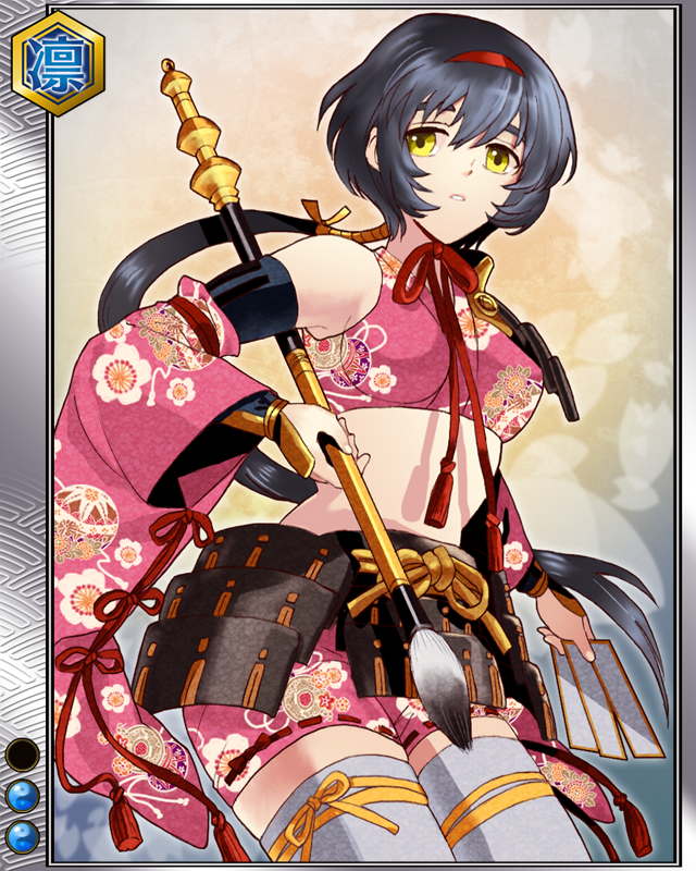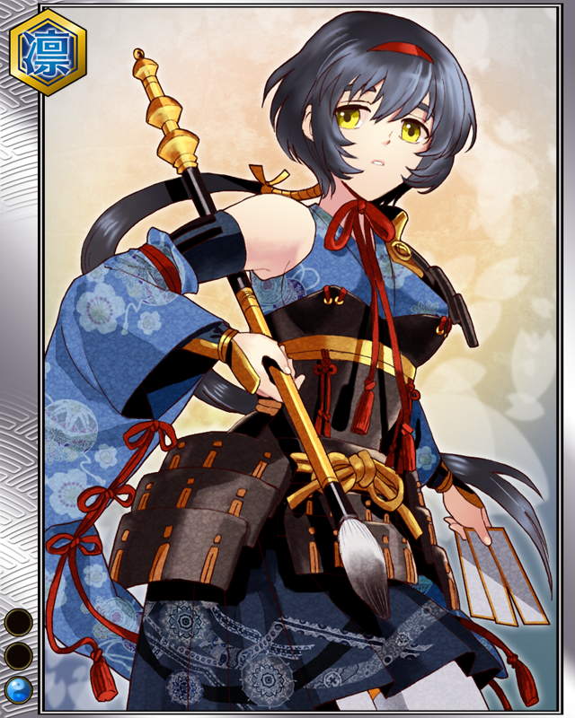| コメント | 「歌は好きですが、戦は……ふふっ、もっと好きです」 妹たちの助けもあり、一度は天下を手にした武将。 連歌を嗜み、それ以上に武を重んじた。 |
