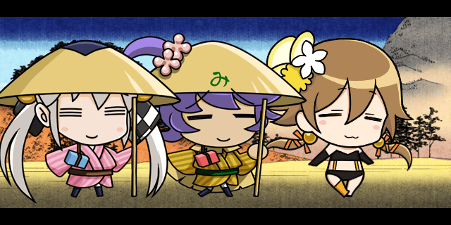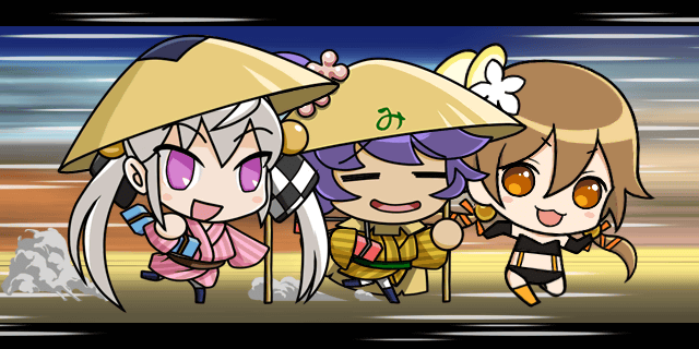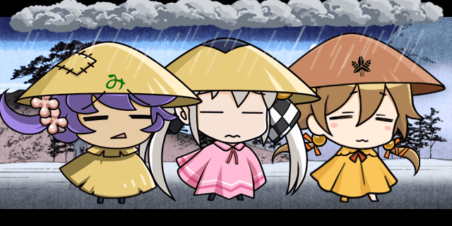 | 秀吉「よし!!休憩っ!!」 三成「している時間はありませんので行軍続行します、秀吉様」 | |
