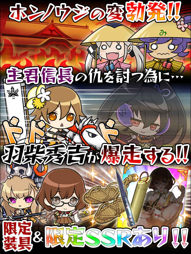 | 以下の2つの条件をすべて満たすと、限定SSRカードがGETできるぞ!! ・山崎到達を8周 ・書簡コンプリートを5回 | [文武聞]蜂須賀小六-守護蜂- |