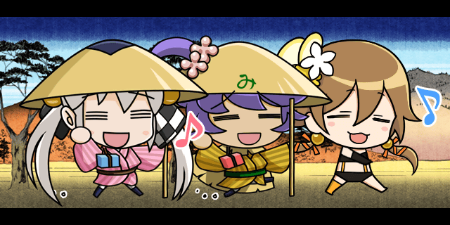 | 秀吉「ひでよしゆくぞ〜かいしんげき〜っ♪みつひでを〜やっつける〜♪」 清正「つ〜いていくぞ〜かいしんげき〜っ♪みつひでごご〜んとやっつける〜♪」 | |