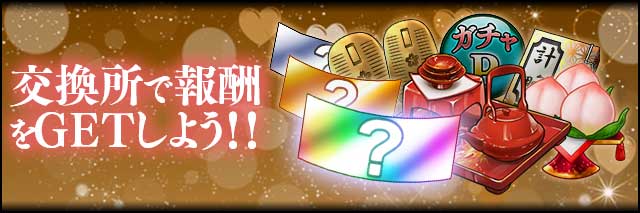 交換所には、イベントガチャチケットや誓盃など、嬉しい報酬が盛りだくさん!!