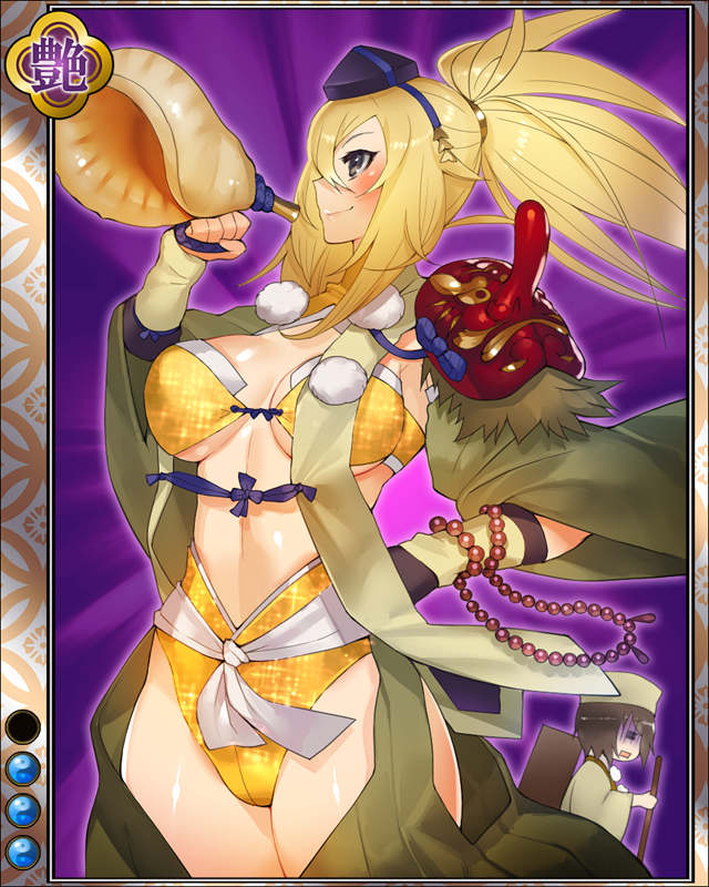 | コメント | 「知っているか、この法螺貝の素晴らしき音色を!!」 吉野の花見に向かう伊達政宗一行は茶屋で休む秀吉一行に呼び止められる。 政宗は部下に法螺貝を吹かせ、斎料を要求したと言う。 |