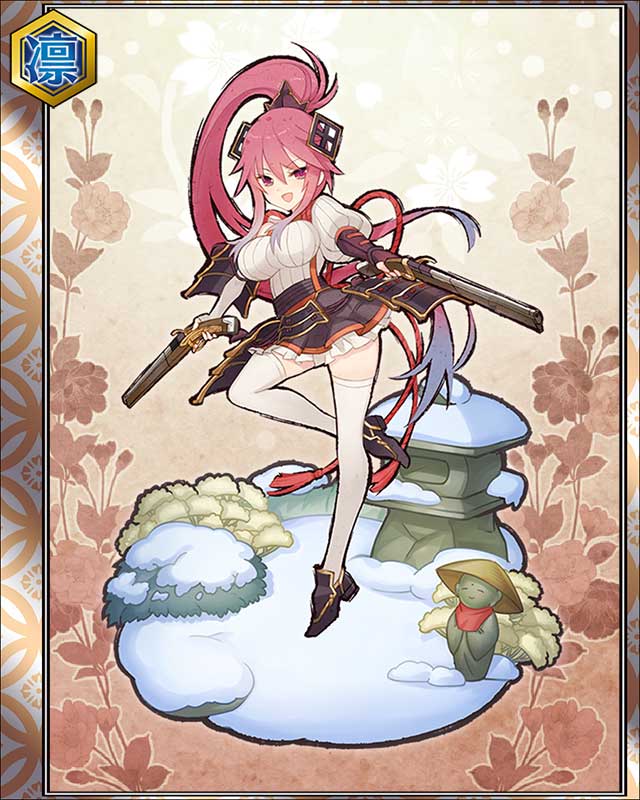| 備考 | ・楽市楽座出品不可 ・依姫化することで依姫枠の第3枠目に設定可能なカード。 ・武将を問わず、依姫として宿らし力を借りることが可能。 ・別武将に宿らせた場合の能力上昇ボーナスが10%、同一武将に宿らせた場合の能力上昇ボーナスが20%。 |