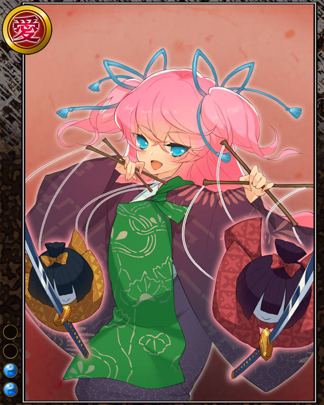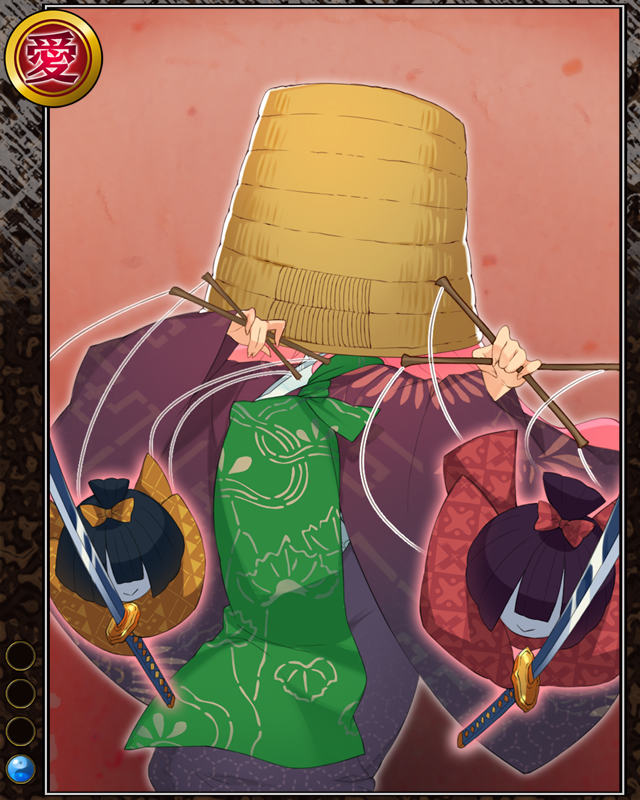| コメント | 「人形が無いと……あちき駄目……」 全国を行脚する傀儡師。巧みな人形操りは 人々に時を忘れさせるほど。その正体は 禁裏に仕える影の者。 | |||