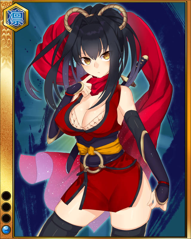 | コメント | 「……」 元は真田幸隆家臣として武田家に仕え、森長可、真田昌幸に仕えた甲斐忍び。 敵陣への進入と情報収集を得意とした。 |