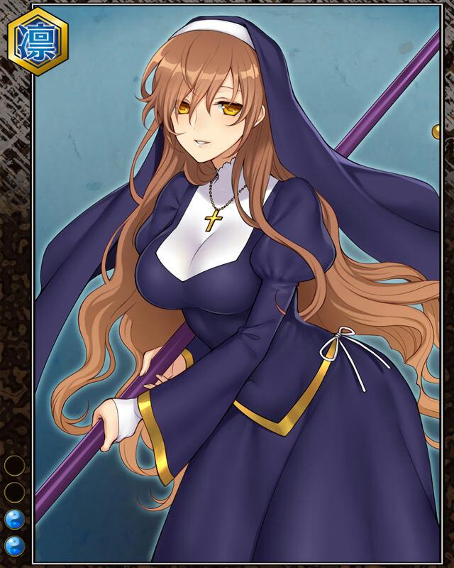 | コメント | 「尊き教えを我が身に」 ブンゴ国のセミナリオで司祭を補佐する役割を担 っている。が、一日に一度はシモンのつまみ食 いを阻止し、オシオキしている。 |