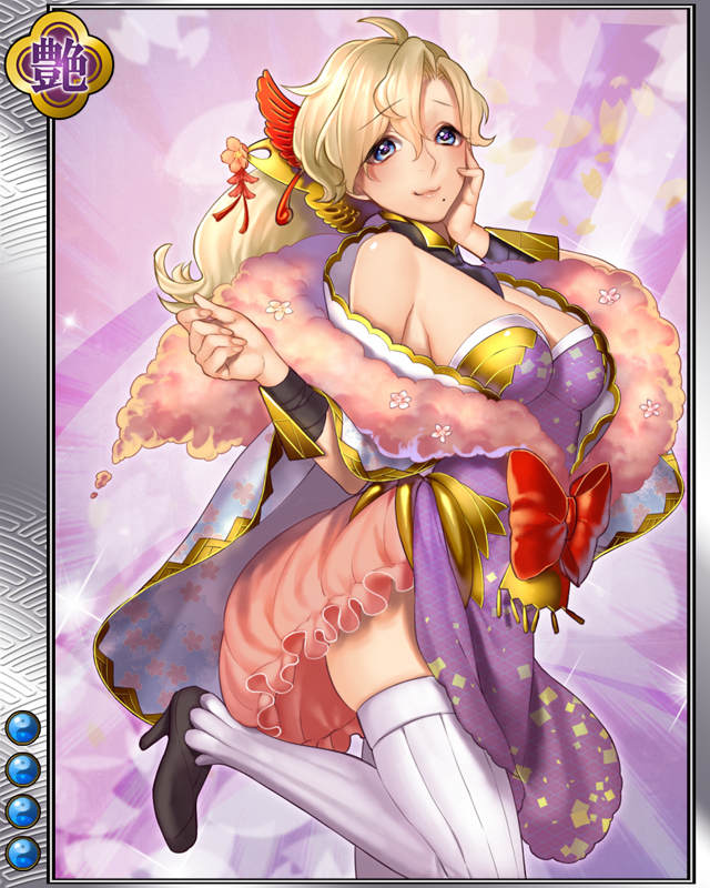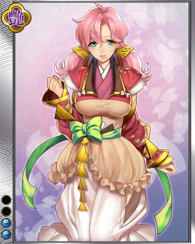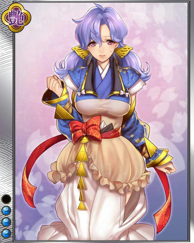 | コメント | 「こ、この娘で平気かしら……」 サガミ国の勇北条早雲の娘。 聡明で知られる北条五代の中では影に隠れているが内政において戦国随一の手腕を見せた。 |