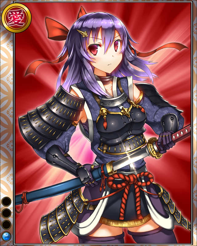 | コメント | 「吾の武はより高みへ……な」 イセ国の国司北畠家当主として、長野家との婚姻外交に九鬼家を打倒してのシマ国征圧と北畠家の版図を広げていった。 |
