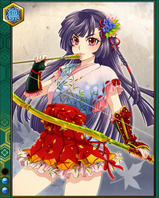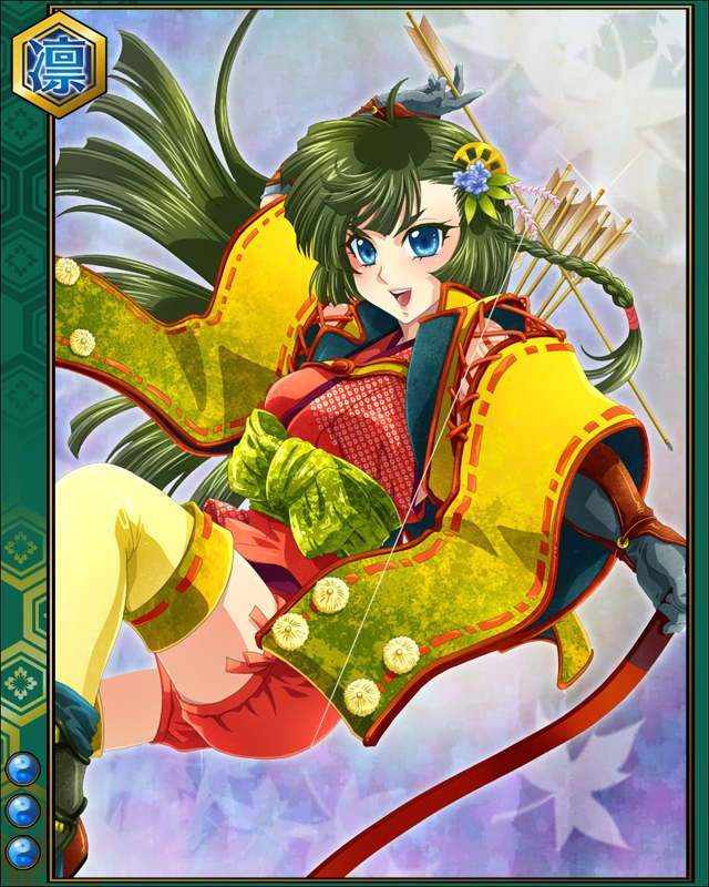 | コメント | 「晴具の矢は百発百中!!外さないからね!!」 イセ国北畠家7代目当主として 内外の憂を取り除きイセ国を安定させる。 書や歌を嗜み、弓馬の達人でも知られる。 | |||