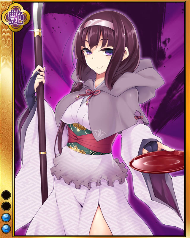 | コメント | 「一兵残らずに鏖……ですよ♪勿論♪」 ブンゴ国大友家家臣でミミカワの戦いで戦死した吉岡鑑興の妻。 島津の侵攻に対し、城主不在のツルサキ城を武略で守り、島津との和睦後も徹底的に殲滅した。 |