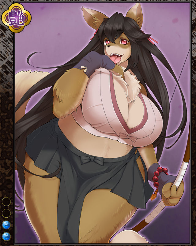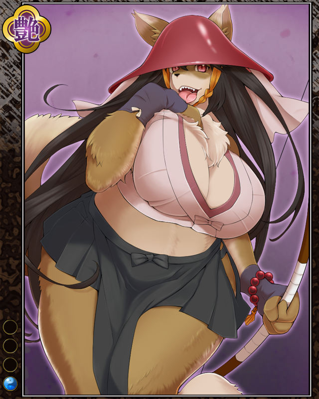 | コメント | 「きゅぅん……痩せちゃう……」 スルガ国岡部正綱の弓備。弓の腕前は高いがそれ以上に食欲旺盛。一夜にして山野の鳥が居なくなった事もある。 | |||