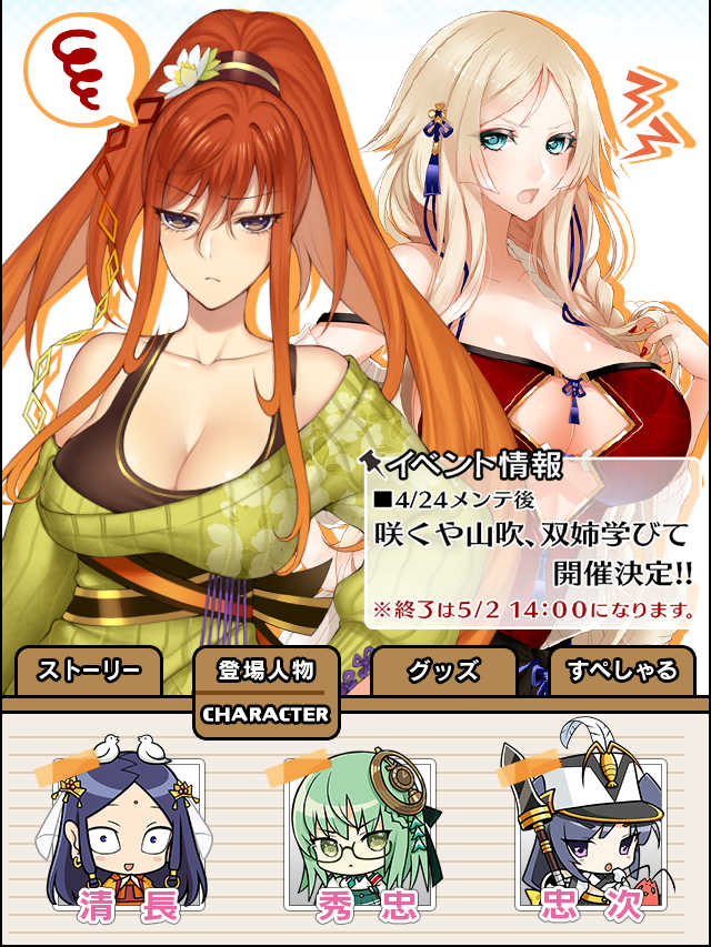 みの吉「姫さま!!新入学の季節ですよ!!街に初々しい人たちが溢れてますねえ」 咲姫「入学といえば、家康からなにやら手紙が来ておったの。……先生を一人貸してほしいそうじゃ」 みの吉「先生ですか!!ふっふっふ……ではこの私がみのみのと、教えちゃいますよ!!ええ、みのみのと!!」 咲姫「無理じゃろ。まぁ、こう言う時は頼れるあやつに行ってもらえばなんなく解決じゃろ!!」