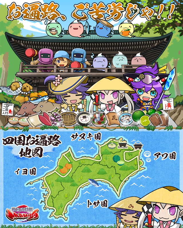 | 幽霊イベント | ユウレイ「あっしと一緒にどうです??お遍路楽しいっすよ??あっし死んでますけど!!」 みの吉「あの……死んでいるのにお遍路してどうするんですかね!!早く成仏してくださいよ!!」 | |