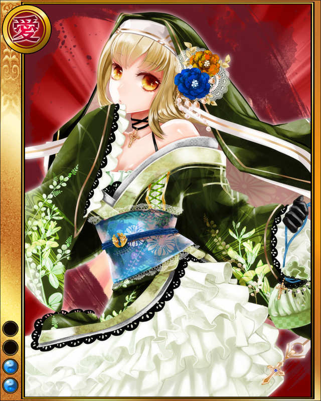 | コメント | 「ど、道雪、こ、これ似合ってるかな??」 毛利元就との対決姿勢を強める中、宗麟は足利義輝よりブゼン国とチクゼン国の守護を命じられる。 弘冶3年夏の事であった。 |