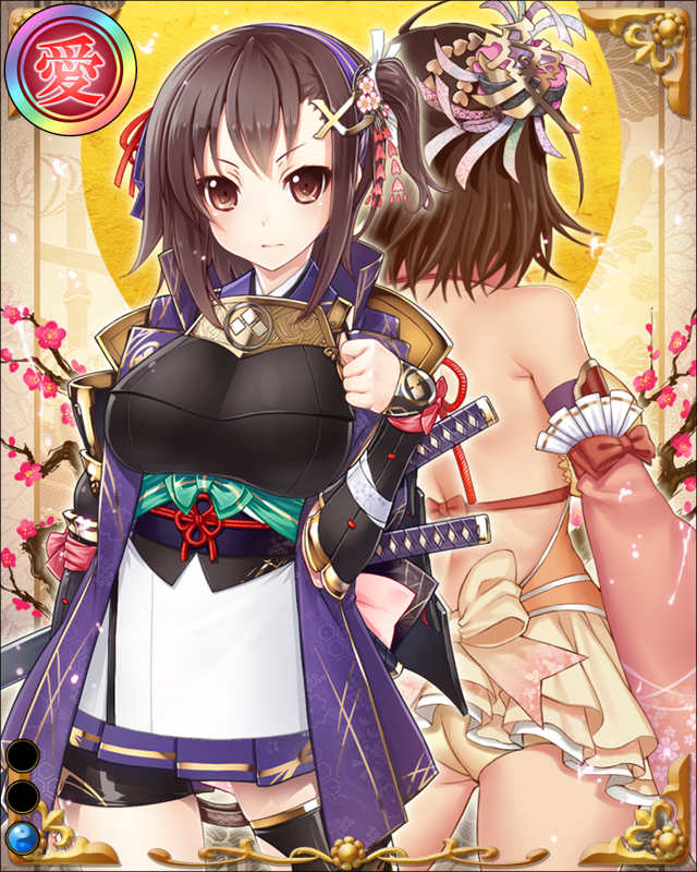 | コメント | 「オレは姉貴とは違うからさ!!」 上杉景勝の忠臣直江兼続の妹。姉兼続同様に主君景勝を助けた。 が、姉妹の仲は険悪で本多政重の養子縁組に大反対、喧嘩別れをする事となった。 |