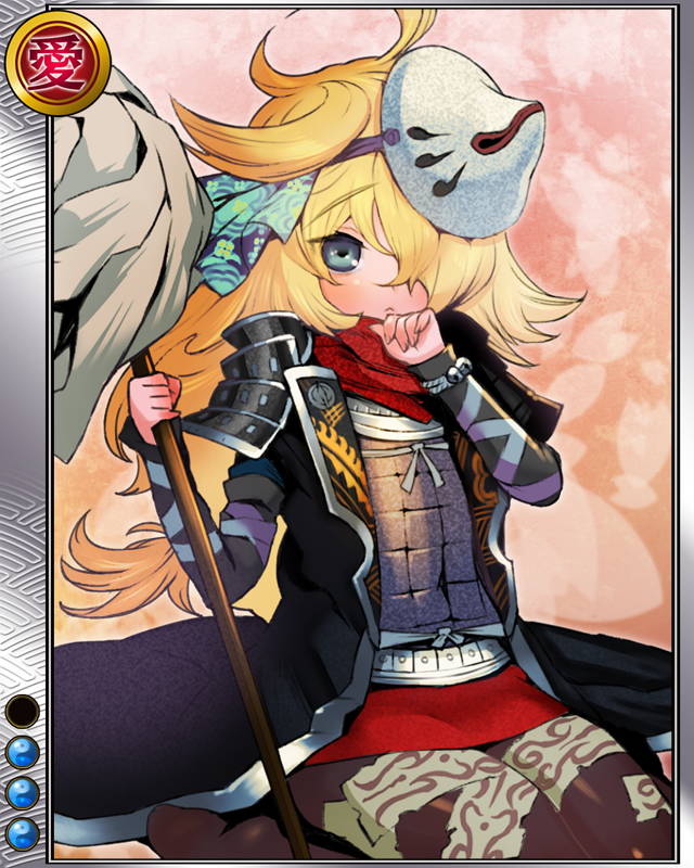 | コメント | 「遊びでつきあってるんじゃないの…」 秀吉の小姓として仕え始める。石田三成とは親友同士で、 関ヶ原においては負けを予感しながらも西軍につく。 |