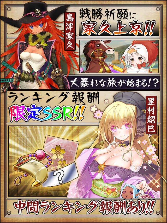 イベント開始から、イベント終了までの撃破Pを集計して、ランキング上位入賞者には豪華報酬をプレゼントするぞ なんと!!トータル個人ランキング報酬には「限定SSRカードも用意されているようじゃな!!