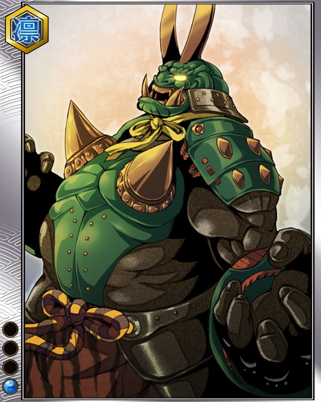 | コメント | 「ちょっと今忙しいから一騎打ちはあとでいい??」 古くから上杉謙信に仕えた怪力無双の豪傑。 その剛力は足利義輝の大猿や武田軍の軍犬をねじ伏せるほど。 |