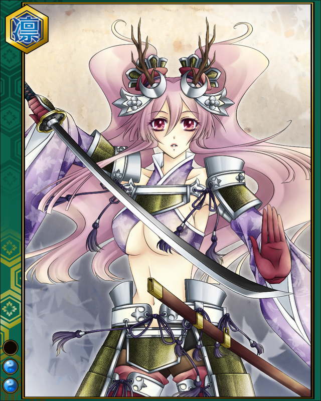 | コメント | 「斬っても斬っても御家再興には至りませんね……」 イズモ国に生まれ、尼子家に仕える。 衰退していく主家を憂い、三日月に御家再興の祈りをささげた。 |