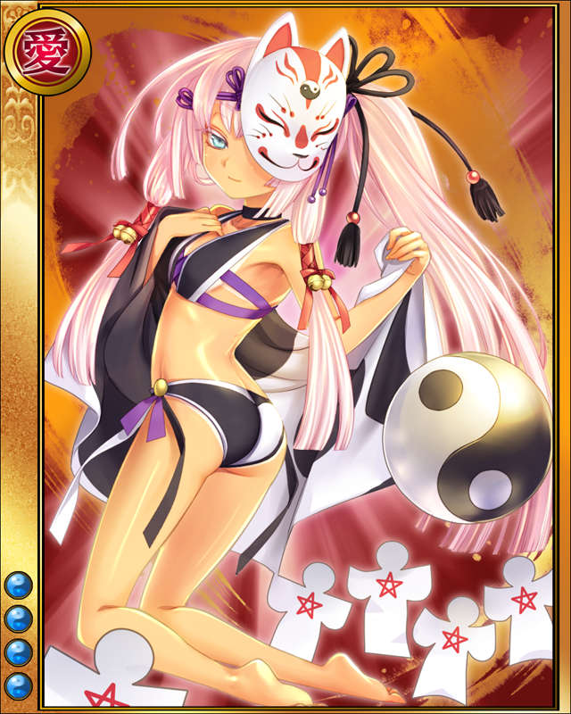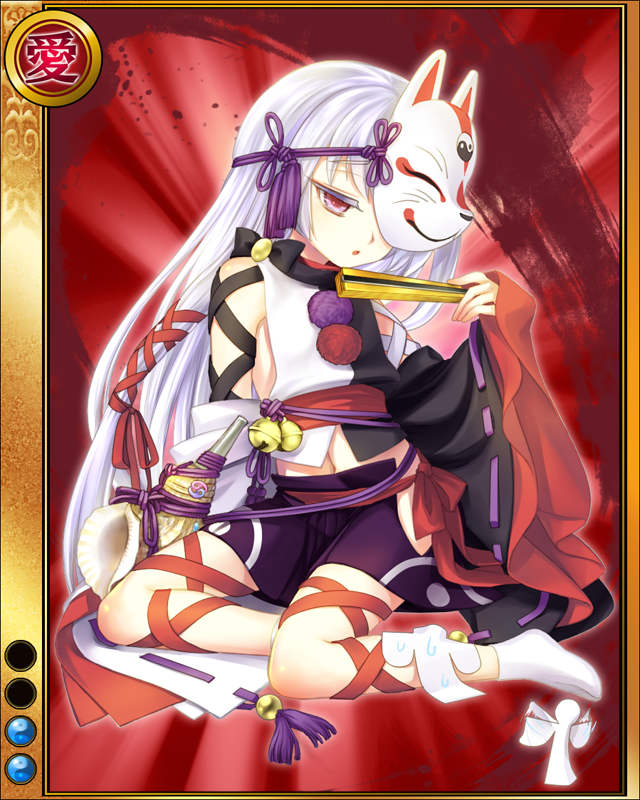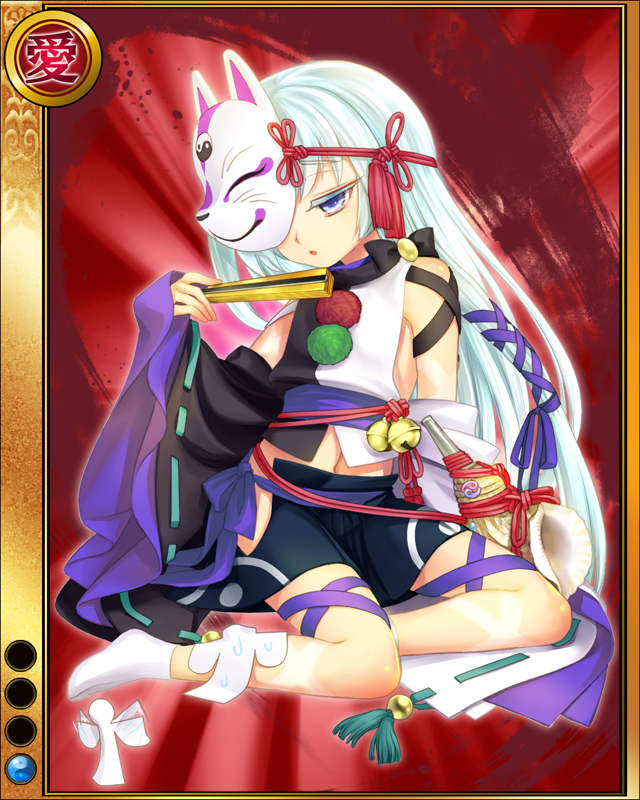 | コメント | 「お仕事終わり……遊ぶ……」 島津義久の軍配者として島津の重要な戦の末を占う。 その幽玄なる声は兵の指揮を高め、高らかなる勝鬨は勝利の思いをより高めた。 |