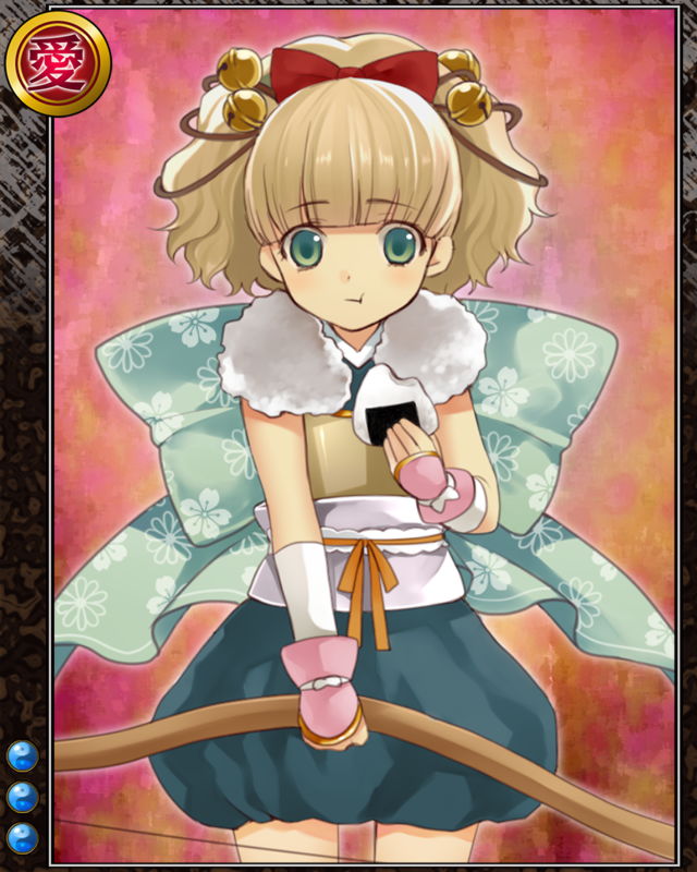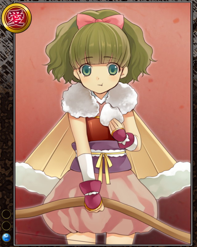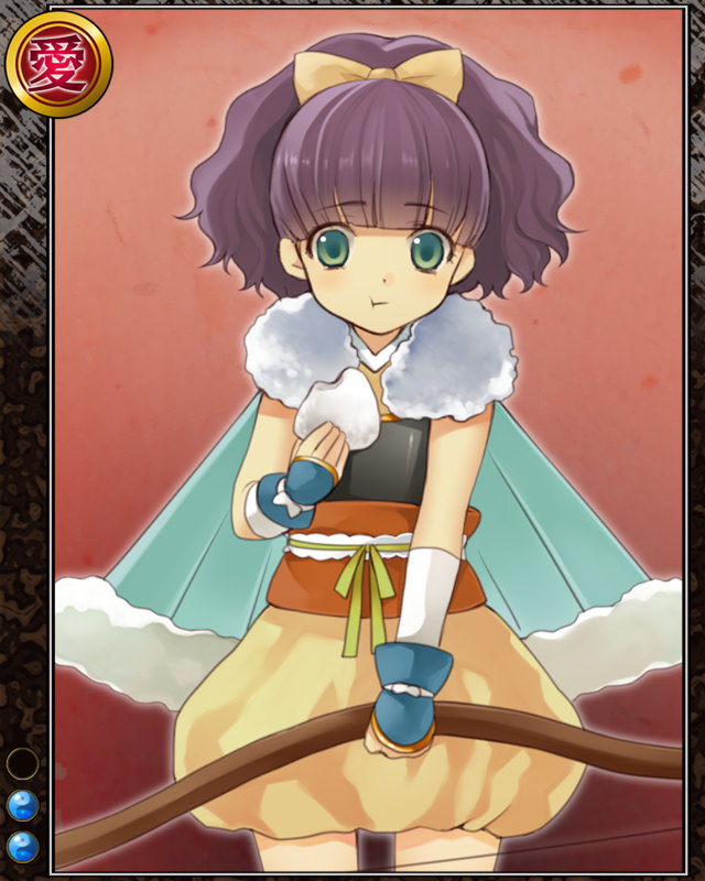 | コメント | 「戦乱を終わらせる、そのために私は戦うの」 ヒタチ国の生まれ。 戦乱の孤児として、寺の住職に拾われた。 戦いを憎むがゆえに戦いに身を投じる。 | |||