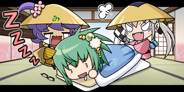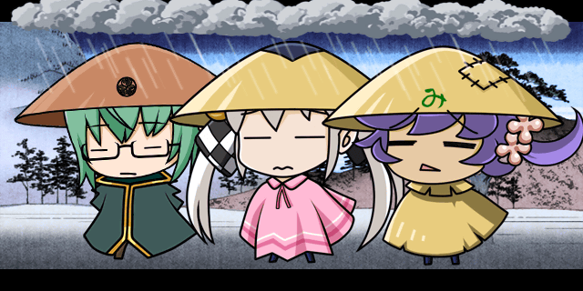 | みの吉「姫さま!!なんか私も調子が悪いたぬ!!」 咲姫「……戻って狸除けのお守りを買っておくべきかの??」 | ||||
