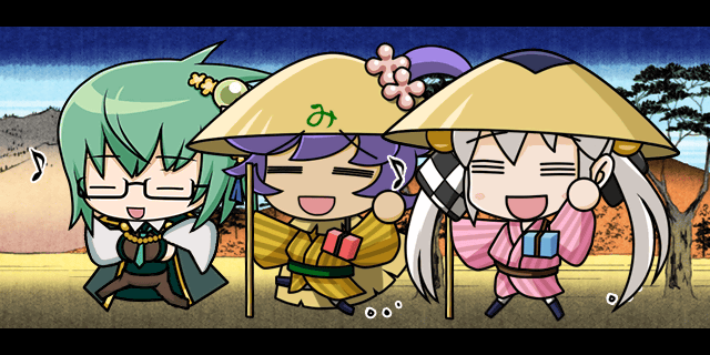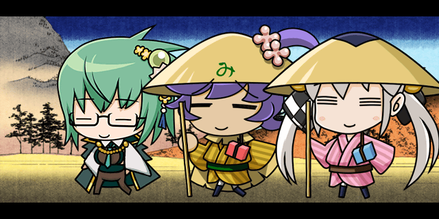 | 秀忠「ぼたんもち~ぼたんもち~将軍様もぼたんもち~♪はっ!!思わず歌ってしまうほど美味いぞ、ここのは!!」 咲姫「ミカワブシらしいなんとも……その……あ、味わいがある歌じゃのぉ……」 | 2里9丁 | |||
