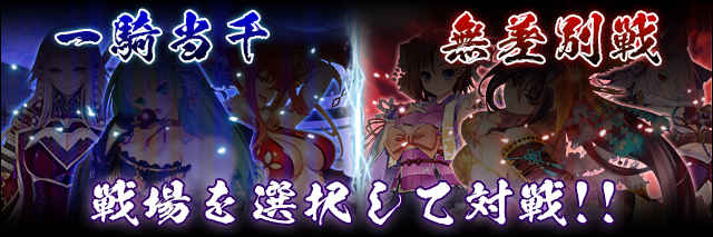 一騎当千では戦場を選んで対戦を行うのじゃ!! 戦場は2ヶ所あり特徴が違うぞ!! 自身の目的に合った戦場を選んで戦うとよいの。