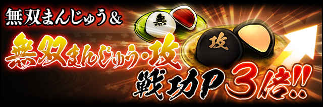 イベント専用アイテム「無双まんじゅう・攻」を使えば、次に攻撃した場合にもらえる戦功Pが3倍になるぞ!!