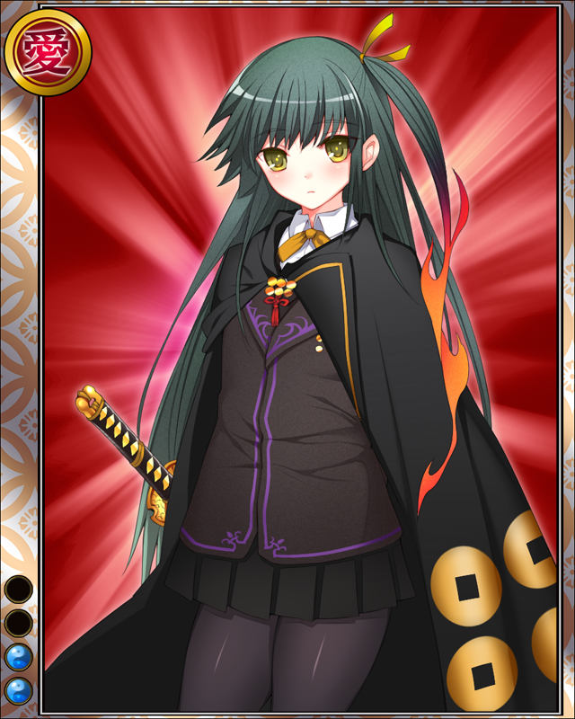 | 学園終了後コメント | 「ならば、この『刀』と共に……新たな地へ!!」 真田幸村と共にオオサカの陣で奮闘、敵将を打ち取る功績を上げるも、幸村の命令でオオサカ城落城を見届ける任を命じられる…… |