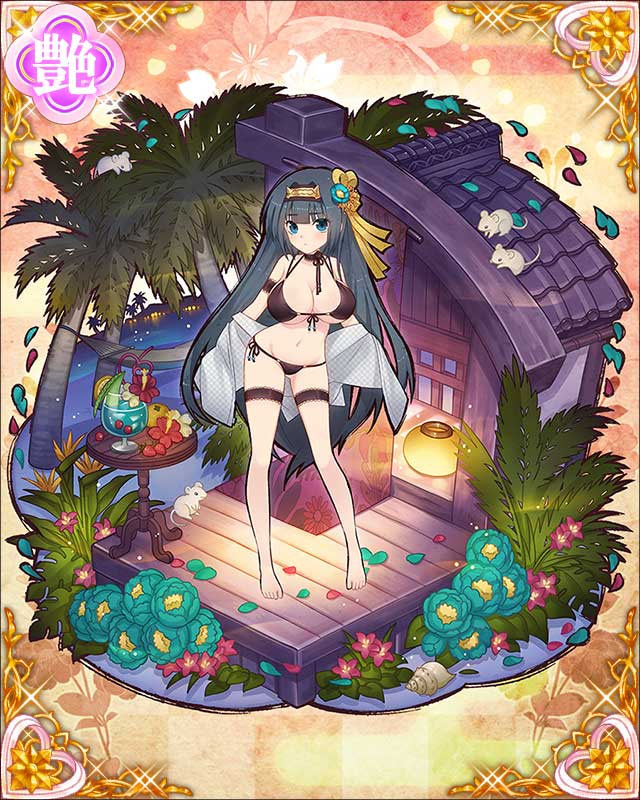| 備考 | ・楽市楽座出品不可 ・依姫化することで依姫枠の第3枠目に設定可能なカード。 ・武将を問わず、依姫として宿らし力を借りることが可能。 ・別武将に宿らせた場合の能力上昇ボーナスが10%、同一武将に宿らせた場合の能力上昇ボーナスが20%。 | |||