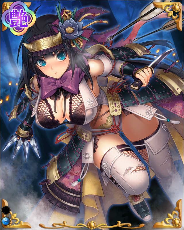 | コメント | 「……蜘蛛糸に黒縄捕縛か(不覚!!だが、まだ負けていない!!)」 影に潜み、神君を護り、降りかかる数多の大苦難をも乗り越えてきた二代目服部半蔵。 その忍びの技は太平の世においても語り継がれた。 | |||