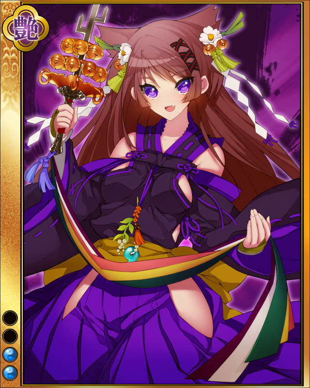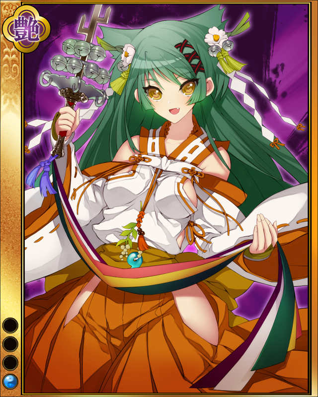 | コメント | 「弦引くは破邪、音鳴らすは退魔の儀です」 甲賀五十三家筆頭である望月家の出身。 信玄より巫女の頭領に任じられる。以後、 少女らに鍛錬を施し、無数の歩き巫女に育 て上げた。 |