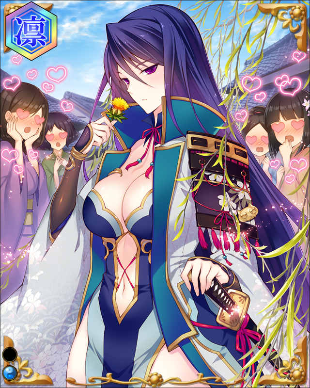 | コメント | 「どうにも人に見られる……な」 豊臣家家臣の中でもずば抜けた美人として知られたが実戦の場が無く、軽んじられたが薄が風に靡くが如く一切動じず、この刃はただ主君秀頼の為にあると言ってのけた。 | |||