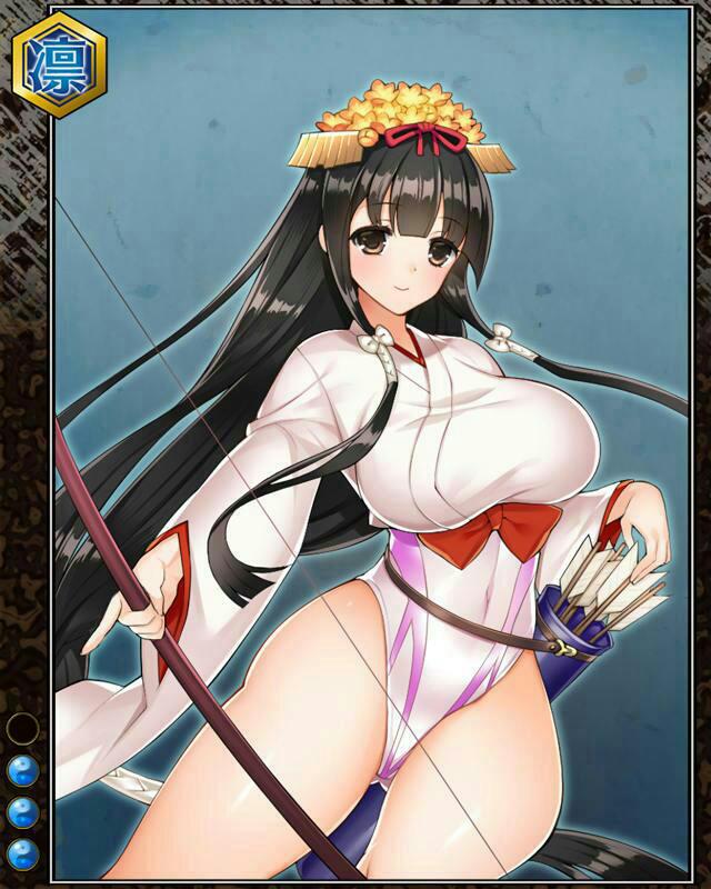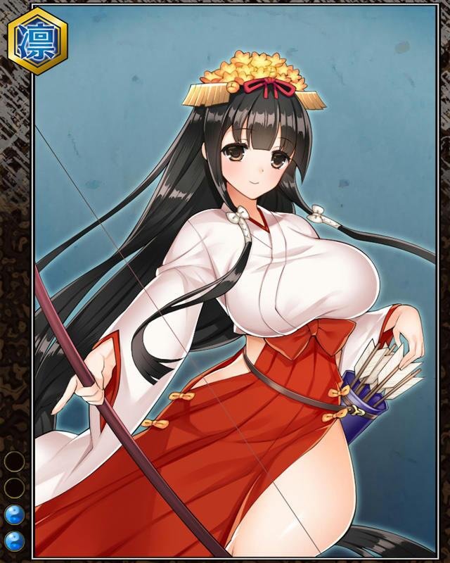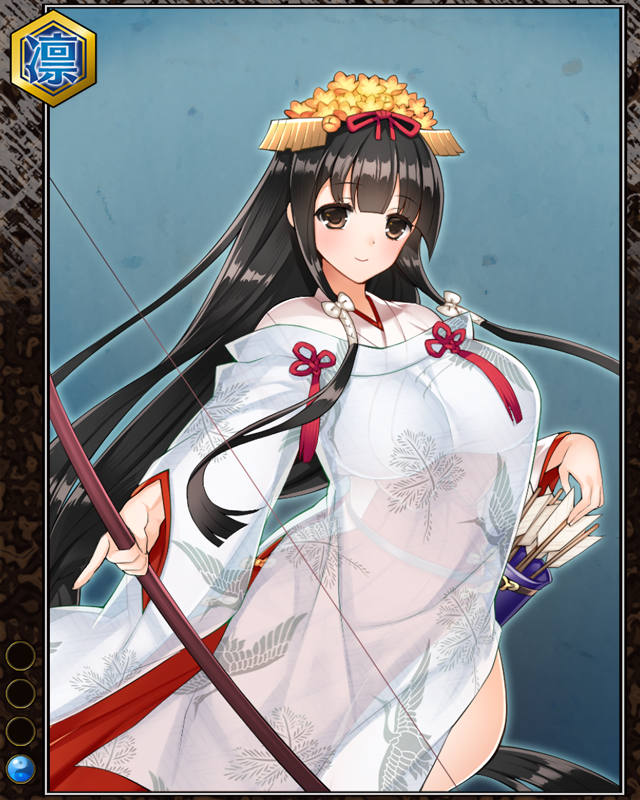 | コメント | 「鳴弦の儀なら任せて!!」 ムツ国出身の梓巫女で諸国を行脚している。 鳴弦の儀を特に得意とするが、実はそれ 以外の神事が大の苦手である。 |