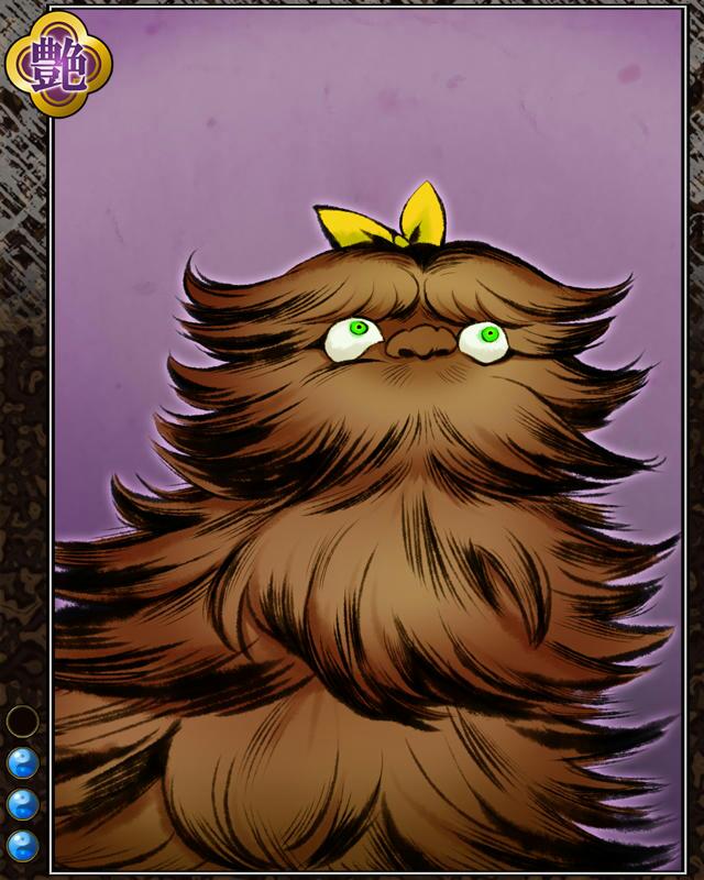 | コメント | 「もっしゃ……もっしゃ……」 全身毛で覆われた妖怪で日当たり悪くじめじめした場所にぽつりと現れる とっても珍しい妖怪でその家の病人を知らせてくれる。 | |||
