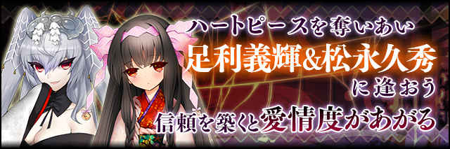 足利義輝と松永久秀に逢いにいくのじゃ! ただし、彼女達と逢うためには、それぞれ「ハートピース」が必要になるぞ!!
