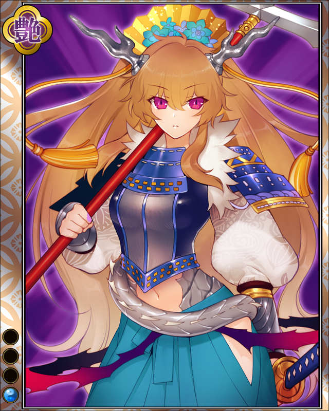 | コメント | 「どうにも好かねぇなぁ……ここは」 龍造寺隆信の次女。オキタナワテに参加したが、 龍造寺隆信や龍造寺四天王が次々と戦死していく中、 辛うじて脱出に成功した。 | |||