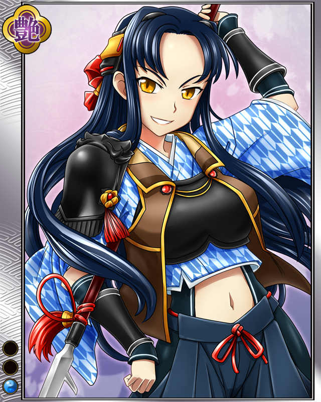 | コメント | 「ま、同じ半蔵同士仲好くするか」 徳川十六神将の1人。槍の名手であった事から槍半蔵と呼ばれ、二代目服部半蔵の鬼半蔵と並んで称された。 |