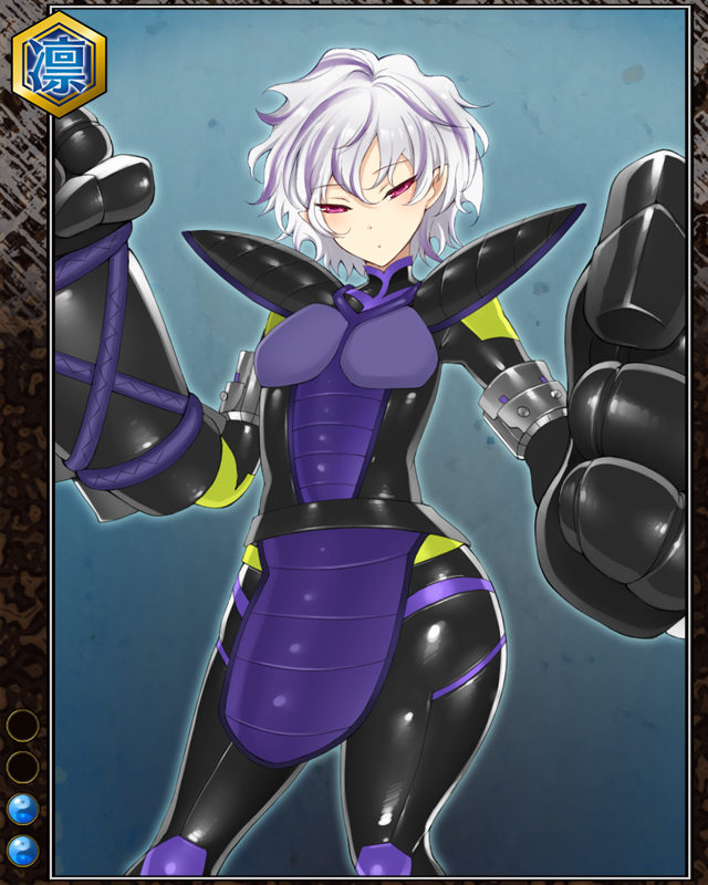 | コメント | 「壊れない。壊れるまで殴る」 刀嫌いで知られ、手甲で戦う薩摩隼人。家で猫を飼っているがまるで好かず、その事で落ち込む。甘い物大好き。 | |||