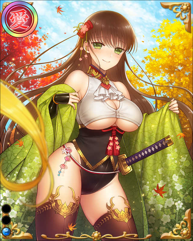 | コメント | 「心地よい紅葉の季節……我が主君……」 二代目片倉小十郎重綱は鬼の武勇で知られる一方、奥羽随一の美貌でも知られ、主君政宗は元より、小早川秀秋も惚れこんだ。 |