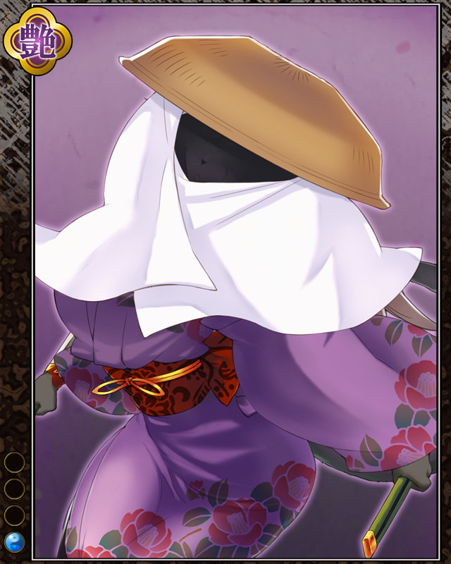 | コメント | 「我が主人の恨み骨髄に徹す……」 ビゼン国で目撃されている猫の忍者。 自害に追い込まれた飼主の恨みを果たす為、 山に籠り、修行の日々を送っている。 | |||