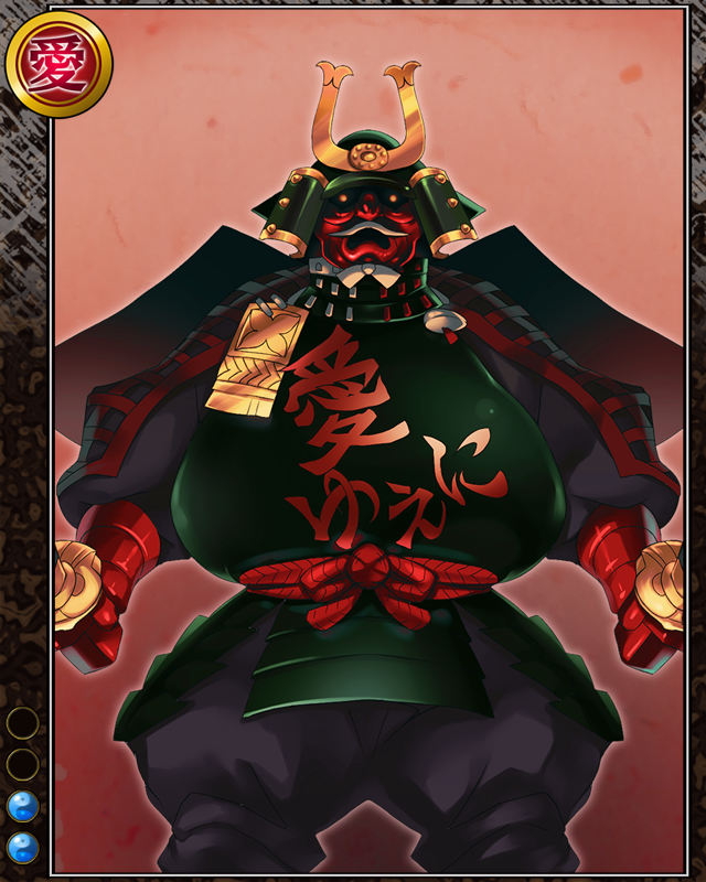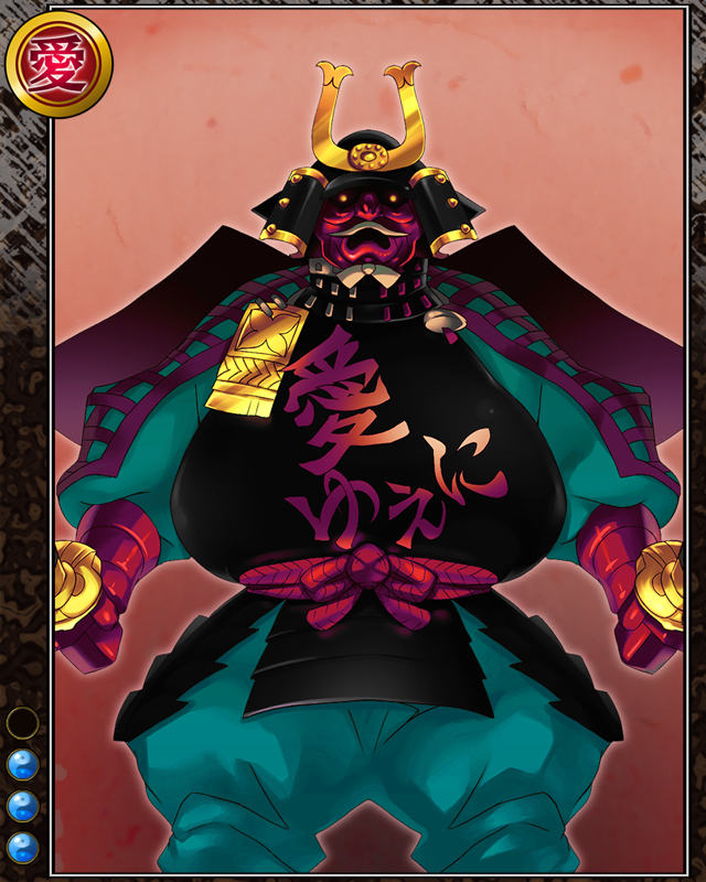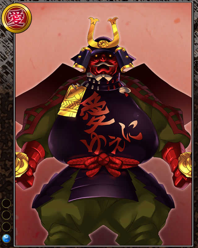 | コメント | 「やっぱ、この甲冑熱い!!なんか臭いし!!」 織田信長直臣の子で幼いころから信長に仕えている。その巨躯は信長を護り、妹を護るかのように奮闘すると言われるが…… | |||